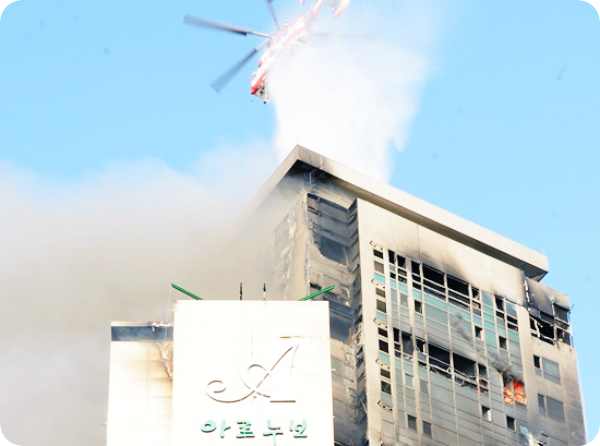 소방청은 오늘 오전 6시 15분쯤 18층 부근에서 불이 다시 번져 고가사다리차, 고성능화학차 등 특수소방장비 및 펌프차, 물탱크차 동원령을 내렸다고 밝혔습니다.