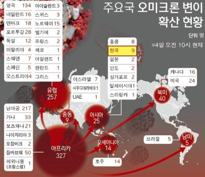 앞서 남아공은 지난달 25일 전후로 자국의 확진 사례를 통해 오미크론의 존재를 처음으로 세상에 공개했다.