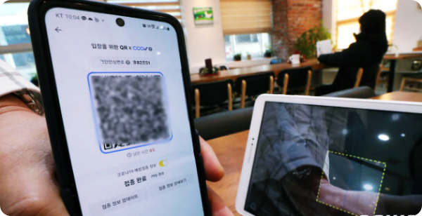 대기하는 손님 10팀 중 1팀꼴로 '딩동' 소리가 나왔다. 대부분 30대 얀센 백신 접종자로, 추가 접종(부스터샷)까지 마쳤지만 전자출입 명부(QR코드) 앱에서 접종정보를 업데이트하지 않은 사람들이다. 일부 식당에서는 전자출입 명부가 먹통인 곳도 있었다.