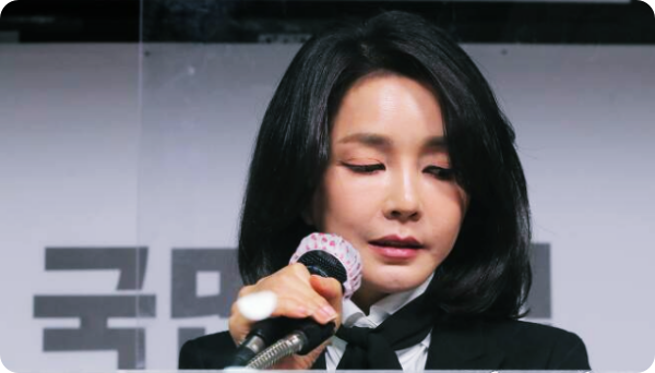 [윤근혁 기자] ▲ 윤석열 국민의힘 대선 후보의 배우자 김건희씨가 26일 오후 서울 여의도 국민의힘 당사에서 허위경력 의혹 등에 대한 입장문 발표를 하고 있다. ⓒ 공동취재사진 윤석열 국
