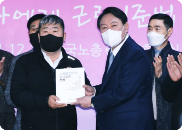 한국노총 관계자는 “인수위에 요구안을 만들어 전달할 예정”이라며 “노동시간 유연화, 중대재해처벌법 개정 등에 반대하는 입장과 노총의 정책요구안을 국정과제에 반영하라는 입장을 전달할 것”이라고 전했다. 한국노총은 이번 요구안에 △실노동시간 단축 △비정규직 감축 △최저임금 현실화 △고용안정 실현 등을 인수위에 전달할 예정이다.