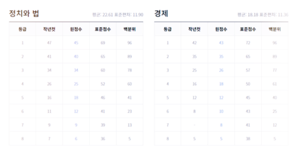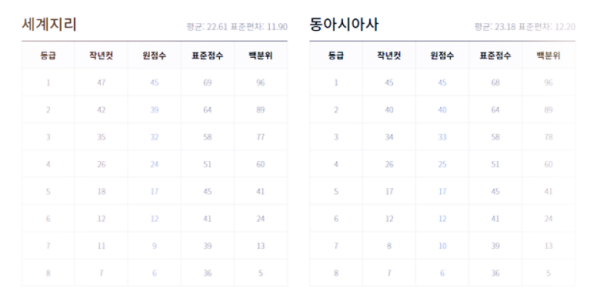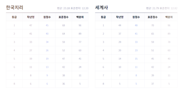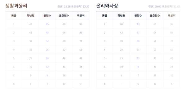 사회탐구 영역 - 생활과 윤리, 윤리와 사상, 한국지리, 세계사, 세계지리, 동아시아사, 정치와 법, 경제, 사회문화 예상 등급컷