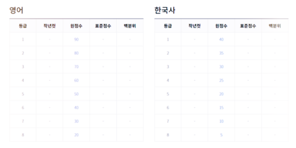 영어, 한국사 예상 등급컷