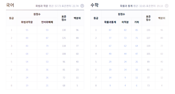 국어, 수학 예상 등급컷