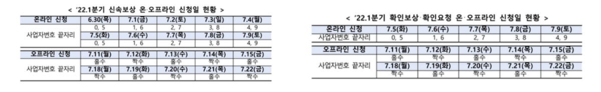 11일부터 22일까지는 손실보상금 전담창구에서의 오프라인 신청을 실시한다. 사업자등록증 끝자리를 기준으로 홀짝제로 운영된다.