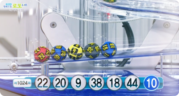 복권수탁사업자 (주)동행복권 측은 제1024회 로또 추첨 결과 1등 당첨번호는 '22,20,9,38,18,44', 2등 보너스 번호는 '10'번이라고 16일 밝혔다.