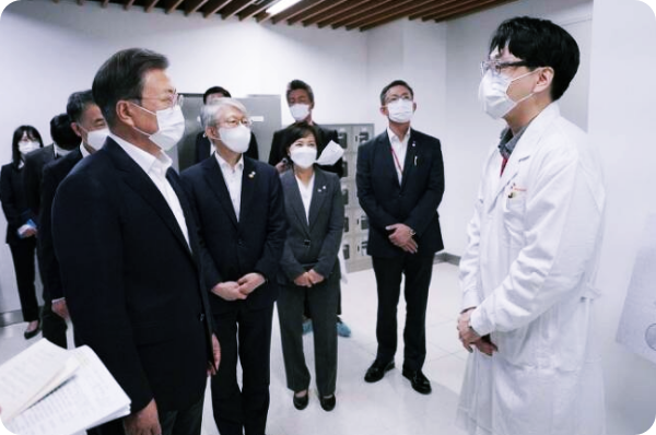 문 대통령은 지난 4월9일 파스퇴르 연구소에서 현장 간담회를 통해 백신·치료제 개발을 위한 범정부 지원을 약속했습니다. 보건복지부와 과학기술정보통신부는 현재 ‘코로나 19 치료제·백신 개발 범정부 지원위원회’를 운영하고 있습니다.