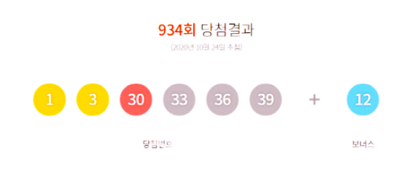 동행 복권은 24일 로또 934회 당첨번호를 '1·3·30·33·36·39'이라고 발표했습니다.