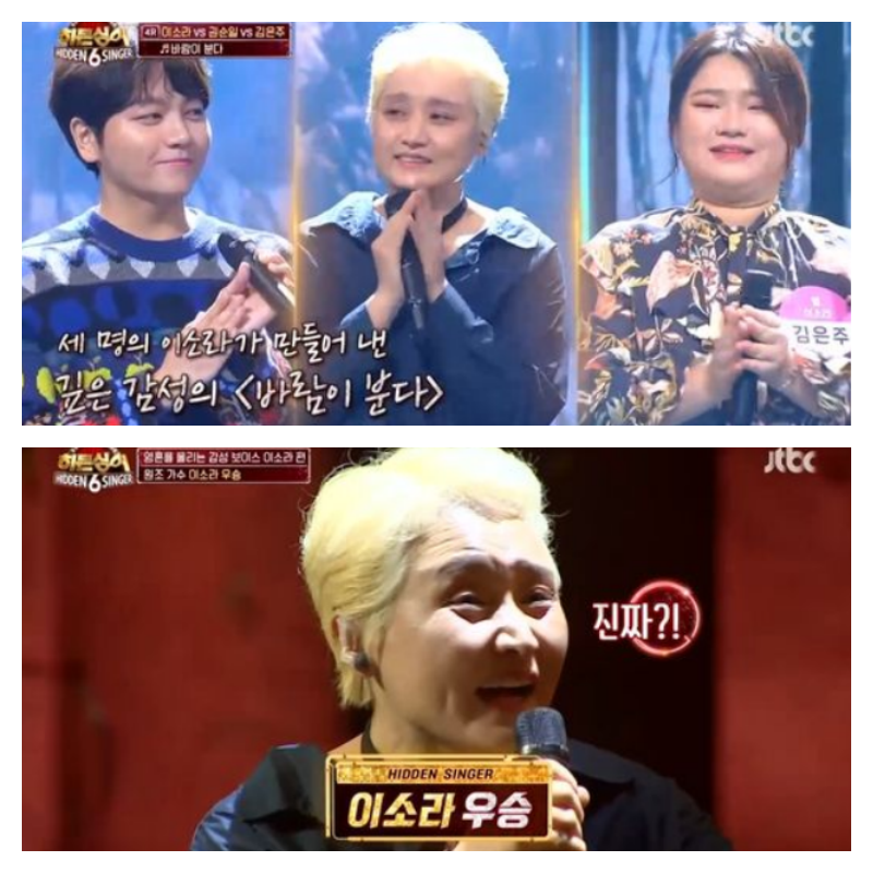 30일 방송된 JTBC '히든싱어6'에서는 가수 이소라가 모창능력자들과 대결을 펼친 가운데 최종 우승을 차지했습니다.
