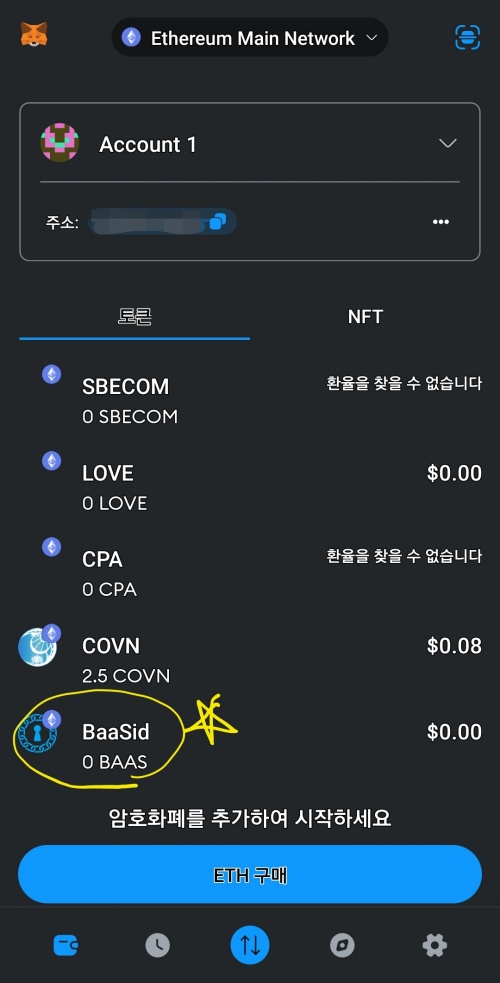그럼 메타마스크 지갑에서 코인원으로 보낸 후 상장되어 있는 BAAS (BaaSid)를 매도하여 현금화할 수 있습니다.