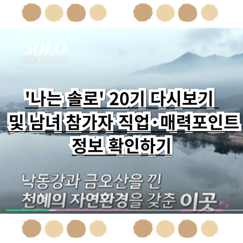 오늘 포스팅에서는 '나는 솔로' 20기의 직업과 매력 포인트 그리고 방송시청하는 방법에 대해 알아보겠습니다.