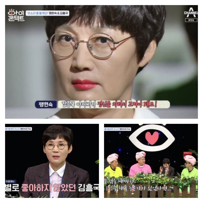 이날 팽현숙이 눈맞춤방을 찾았고 팽현숙이 눈 맞춤 방에서 만난 사람은 김흥국이었습니다. 팽현숙은 제작진과의 인터뷰에서 "내가 비록 나이가 어리고 후배지만 아저씨한테 할 말은 하고 싶어서 용기를 냈다"라며 "아저씨한테 좋은 얘기를 하려고 나온 건 아니다"라고 말했습니다.
