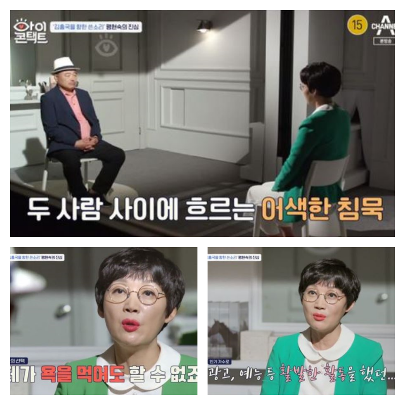4일에 방송된 채널A '아이콘택트'에서는 팽현숙이 김흥국을 눈 맞춤 방에 초대해 진심 어린 조언을 건넸습니다.