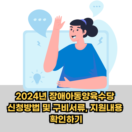이상으로 2024년 장애아동양육수당 지원사업의 지원대상 및 지원내용 그리고 신청방법에 대해 알아보았는데요, 2024년 장애아동양육수당 지원사업은 장애아동을 양육하는 가정에 큰 도움이 되는 제도입니다.