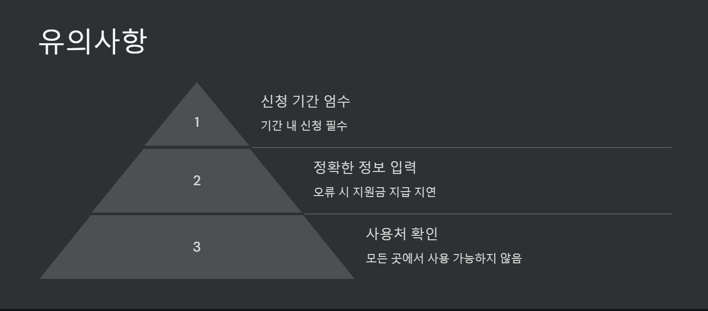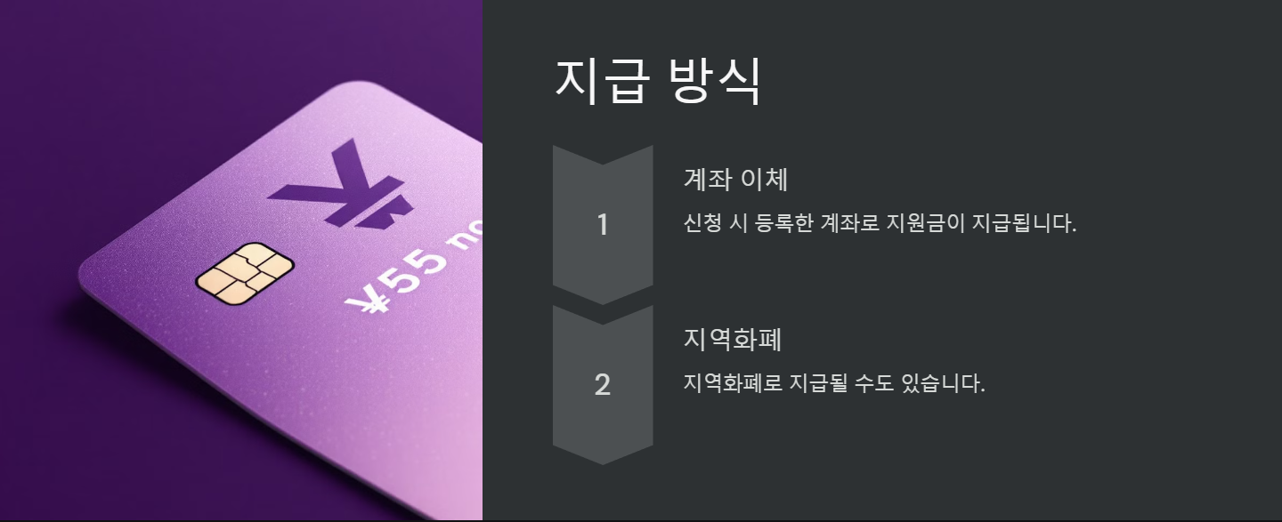 - 신청 후 1~2일 이내에 지원금이 지급됩니다.