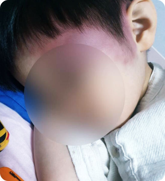 머리를 세게 맞은 A군은 뒤통수와 얼굴 옆면에 시퍼런 피멍이 생기더니 며칠 지나지 않아 피멍은 눈가로까지 번졌습니다.
