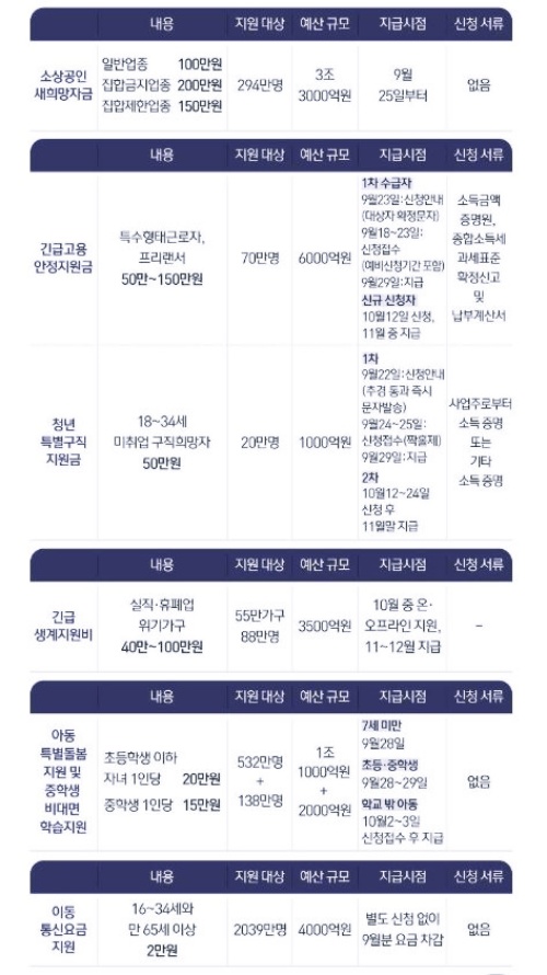 대신 코로나 재확산으로 생계·휴폐업 위기에 놓였거나 일감이 급감한 Δ소상공인 Δ저소득층(긴급 생계비) Δ특고 종사자(긴급 고용안정지원금) 지원은 유지될 것으로 보입니다. 하지만 이들 중에서도 지원 선별 요건이 강화될 가능성 또한 농후합니다.