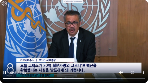 세계 백신 면역 연합(GAVI) 등과 함께 코백스를 공동 설립한 세계 보건기구(WHO)는 18일(현지시각) 보도자료를 내어, 코백스가 유력 백신 제조사들과 20억 회분의 백신을 구매하기로 했다고 밝혔습니다.