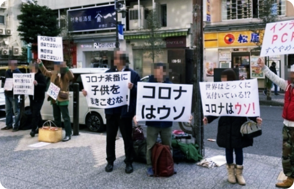 이들은 코로나 바이러스 방역에 힘쓰는 일본 정부 및 후생노동성을 비난하며 언론에서 전하는 코로나 관련 ‘뉴스를 삭제하라’ 등의 이해하기 힘든 주장을 펼쳤습니다.