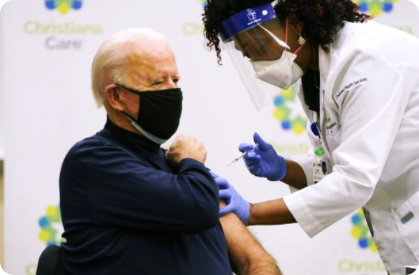 12월 21일 바이든 대통령 당선인이 TV 생방송에 나와 팔을 걷어붙였습니다. 지금 미국에서 가장 '중요한' 인물인 차기 대통령 당선인이 직접 백신을 맞는 장면을 미국민들에게 보여주기 위해서입니다. 아내인 질 바이든 여사와 함께 백신을 맞은 78세 당선인은 빠른 접종이 가능하게 해 준 이들에게 감사를 표했습니다.