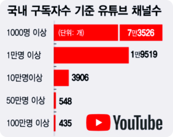 8. 유튜버 1년 새 5.6만→9.8만…10만 유튜버 3900여 명, 100만 유튜버는 435명
