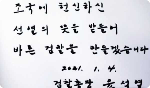 앞서 윤 총장은 지난해 12월31일 배포한 신년사를 통해 "국가, 사회의 집단적 이익을 내세워 개인의 자유와 권리를 함부로 희생해서는 안 된다는 것이 자유민주주의 헌법의 핵심 가치"라고 강조한 바 있습니다.