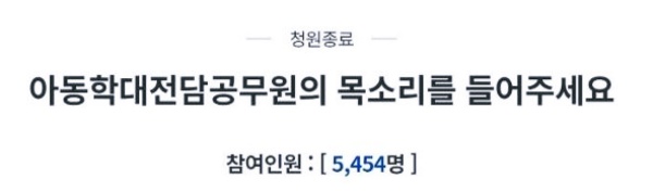 청원인은 각 지자체에 배치된 아동학대 전담공무원의 수가 적고, 피해 아동의 의료비도 편성되지 않았다며 현장 목소리를 듣고 정책을 마련해야 아동학대를 방지할 수 있다고 했습니다.