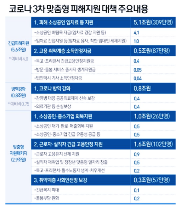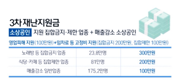 정부가 코로나 19 3차 확산으로 피해를 본 소상공인과 특수형태 근로자(특고)·프리랜서 등 고용 취약계층에 대한 3차 재난지원금을 내일(11일)부터 지급합니다.