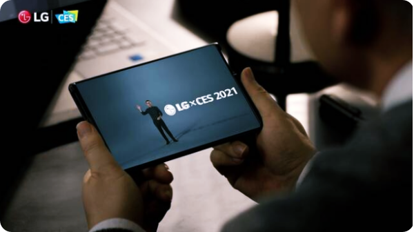 LG전자는 11일 오후 온라인으로 열린 CES 2021 LG 프레스 콘퍼런스에서 'LG 롤러블'을 티징(teasing; 맛보기·예고) 형식으로 선보였습니다.