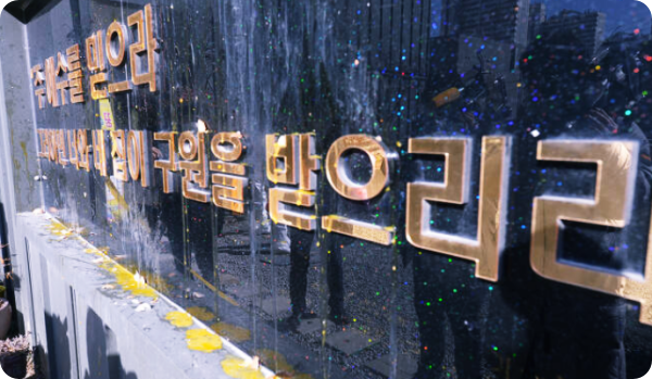 '퍽'하는 소리와 함께 '주 예수를 믿으라. 그리하면 너와 네 집이 구원을 받으리라'는 성경 구절이 적힌 건물 외벽 조형물이 계란 파편으로 범벅이 됐습니다.