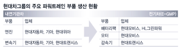 28일 현대차 노사 양쪽의 설명을 들어보면, 현대차그룹은 내연기관차의 파워트레인에 해당하는 E-GMP(일렉트릭-글로 벌 모듈러 플랫폼) 전기차의 PE(파워 일렉트로닉스) 모듈을 모두 부품 계열사에서 생산하기로 했습니다. E-GMP는 현대차 그룹의 전기차 전용 플랫폼으로, 오는 3월 출시하는 아이오닉 5를 시작으로 모든 전기차에 적용될 예정입니다. 현대차 그룹 관계자는 “E-GMP 전기차 파워트레인의 경우 현대모비스와 (그룹 바깥의) 다른 부품업체들을 경쟁시켜 원가를 절감하는 방향으로 갈 것”이라며 “현대차나 기아는 선택지에 없다”라고 말했습니다.