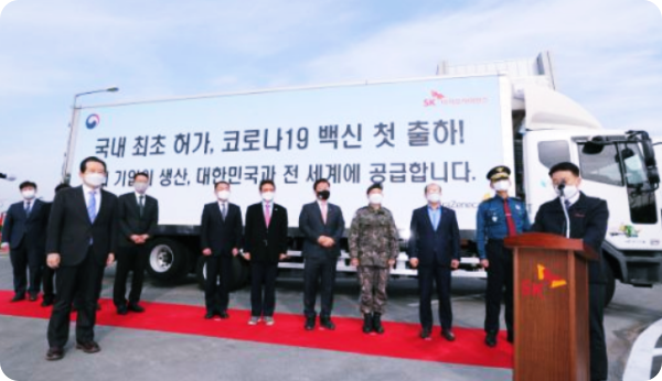 국내 첫 코로나 19 백신이 될 아스트라제네카(AZ) 백신이 24일 오전 위탁 생산업체인 경북 안동 SK바이오사이언스에서 처음으로 출하됐습니다.