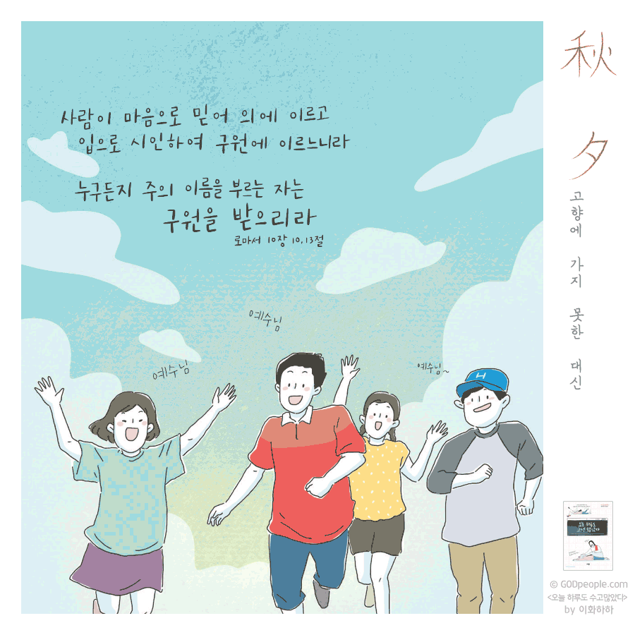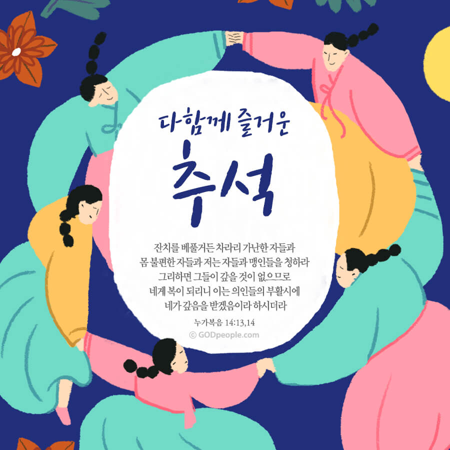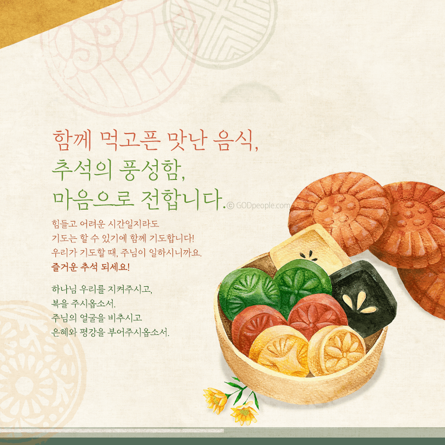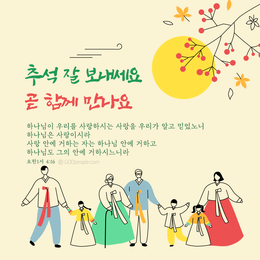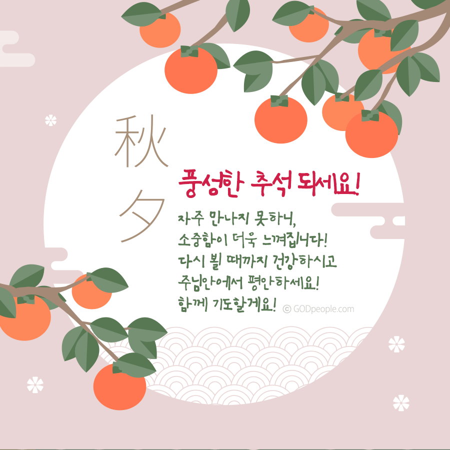 혹시 이번 추석에 만나지 못하는 가족, 친구, 부모님이나 은사님 또는 교역자님께 말씀카드로 인사를 나누어 보는 건 어떨까요?