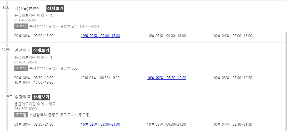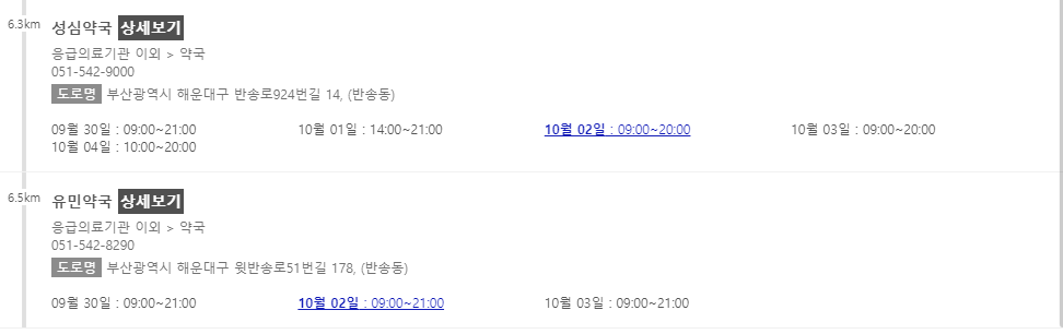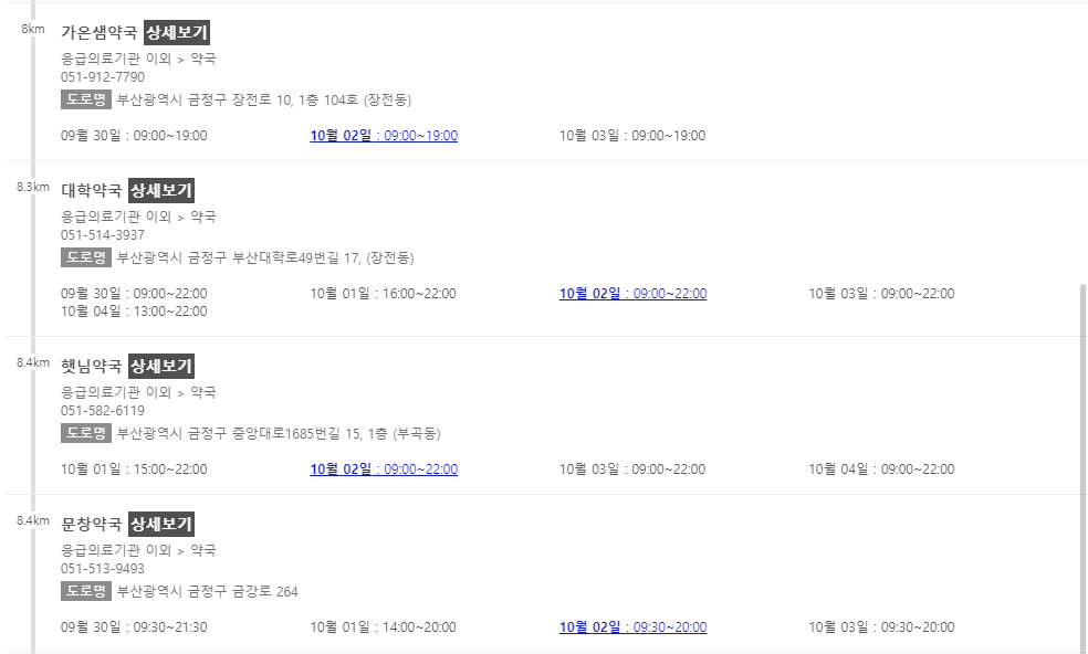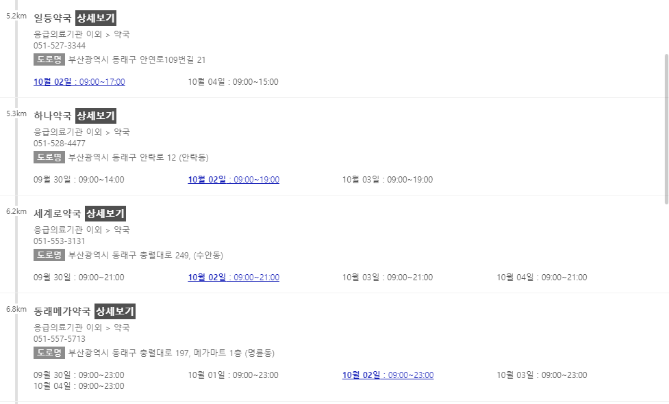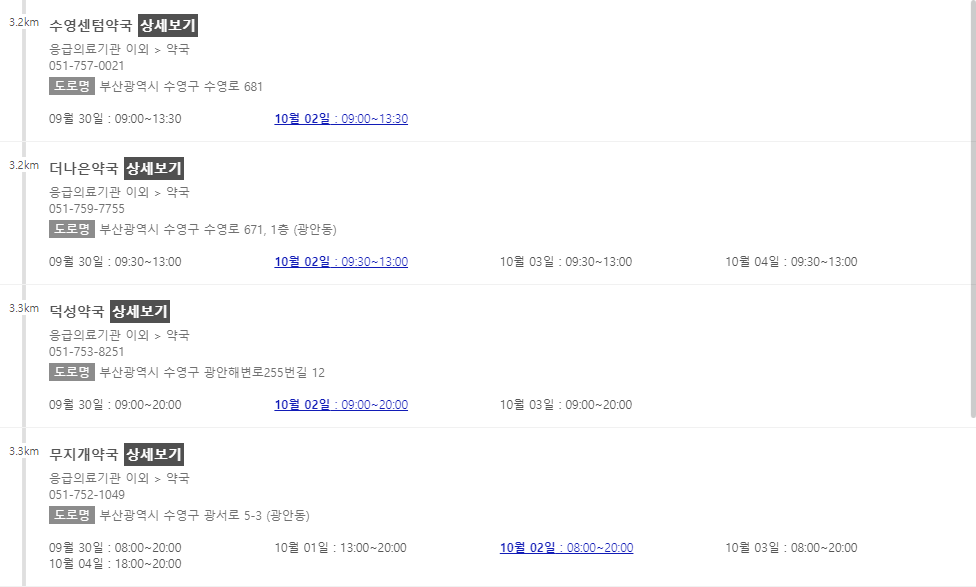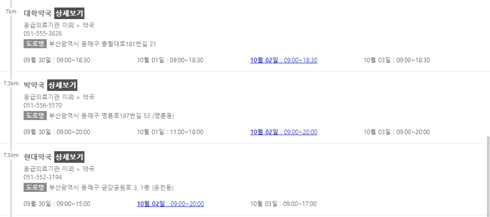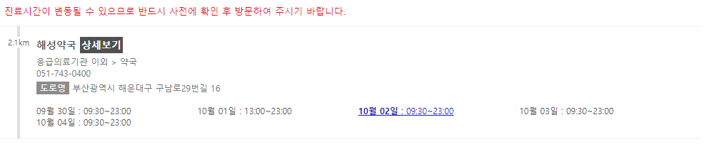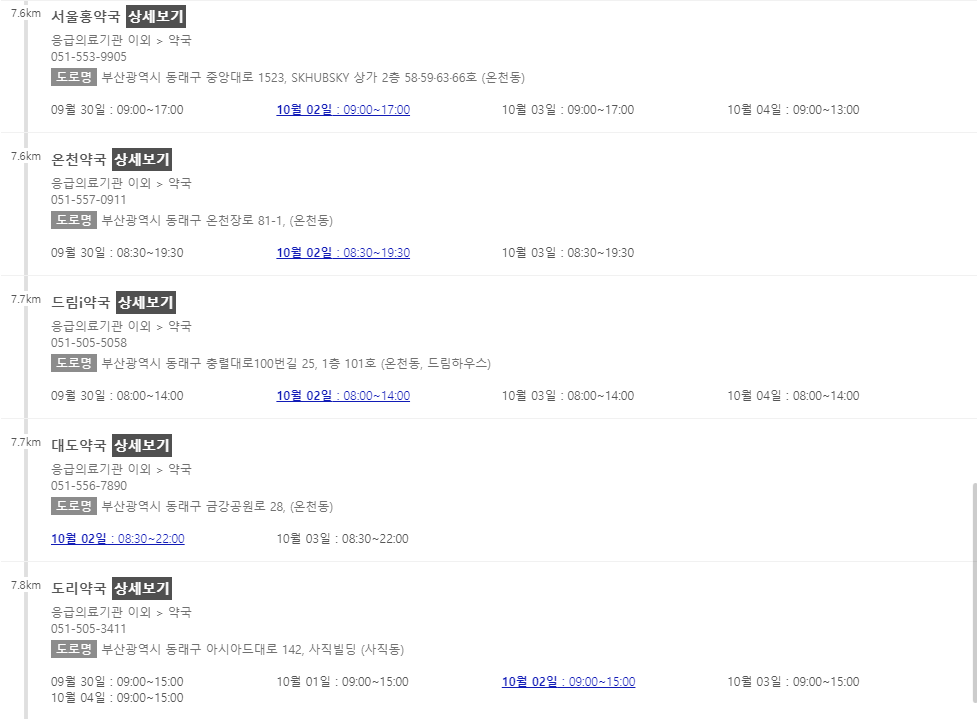이 포스팅 이후에 차례로 부산 지역에서 추석 연휴에 문을 여는 약국들을 나열해 놓을 예정이니 참고해주시면 감사하겠습니다.