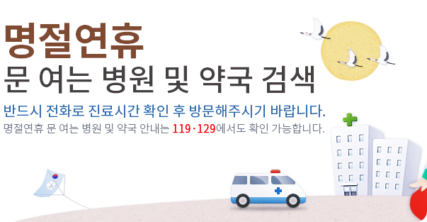 추석연휴에는 과식이나 여러 가지 이유로 아이들이 아플 경우가 많은데 이럴 경우 주변에 약국이나 병원이 하는 곳이 있는지 많이들 궁금해하시더군요.