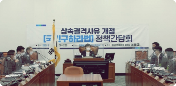 한편, 지난 3월 17일 서울 영등포구 국회 영상회의실에서 상속결격사유 개정 '국민 구하라 법' 정책간담회에서는 상속권에 대한 논의가 진행된 바 있습니다. 서영교 의원과 김삼용 중앙대 법학전문대학원 교수, 노종언 변호사, 이영 양육비 해결 모임 대표는 '상속 결격사유' 개정에 동의했고, 정재민 법무부 심의관과 한정애 법원행정처 심의권은 "법원 재판을 통해 상속권 상실을 하면 좋을 것"이라고 말했습니다.