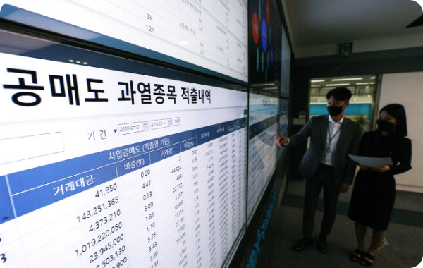 전날 공매도 거래대금은 총 1조1000억여원(코스피 8140억 원, 코스닥 2790억 원)으로 각각의 시장에서 4.9%, 3.1% 비중을 차지했습니다. 투자자별로는 코스피 시장의 경우 외국인 90.7%, 기관 7.7%, 개인 1.6%였습니다. 코스닥 시장에서는 외국인 78.0%, 기관 20.3%, 개인 1.8%를 차지했습니다.