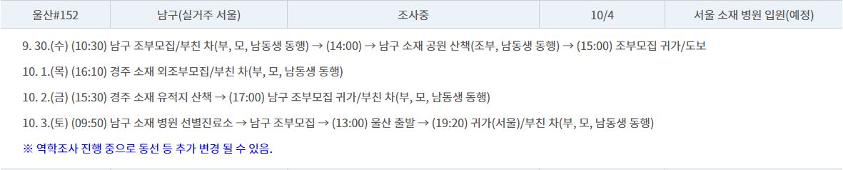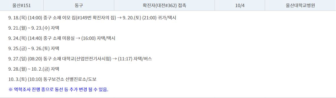 다음은 울산 150~152번 확진자의 이동정보이니 참조하세요.