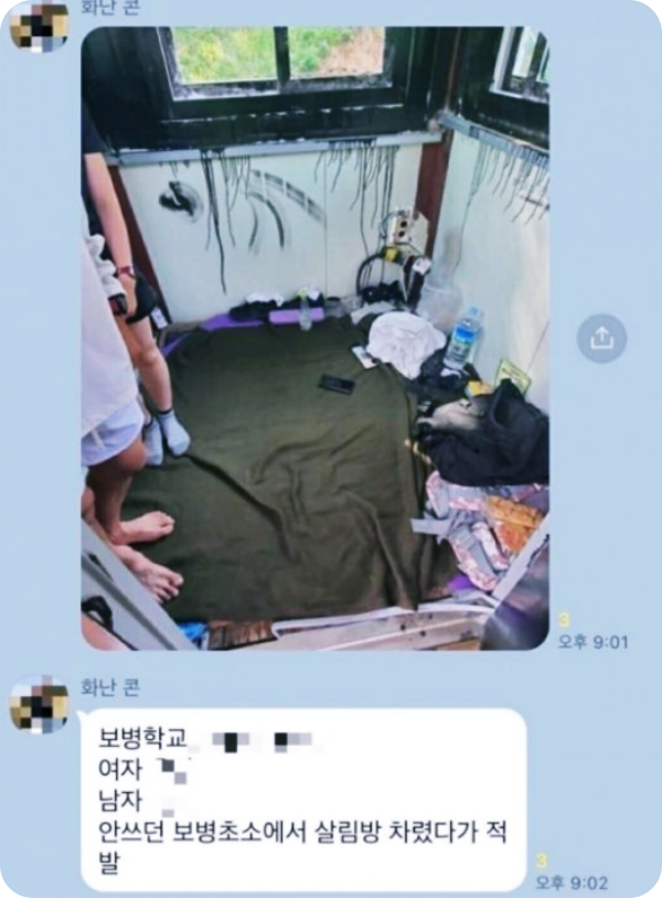 이 같은 사실은 부대 부사관이 현장을 촬영한 사진을 카카오톡 단체 대화방에 올리면서 외부에도 알려졌습니다. 해당 대화 내용 캡처 화면은 각종 온라인 커뮤니티와 SNS를 통해 퍼졌습니다.
