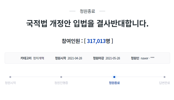 법무부는 법이 개정될 경우 3천930명 정도가 새로 국적을 취득할 것으로 추산했는데, 이 중 95%는 중국 출신이 된다는 게 국적법 개정 반대 측의 주된 근거입니다.
